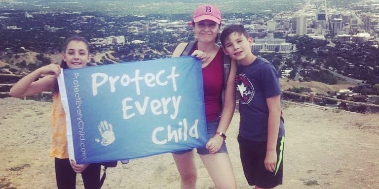 On Sunday, July 14th, 2019, the Darrin and Alicen Bateman family of five unfurled their banner over the Wasatch Valley. The flag, or ensign, bore this message: Protect Every Child.