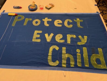We unfurl these banners in memory of the abused children of yesteryear who are now adults. We know you are there. What happened to you was not your fault. It was wrong. You are loved. We care that you were harmed. If you have spoken up we believe you. If this is not the time for you to speak up, we will be your voice.