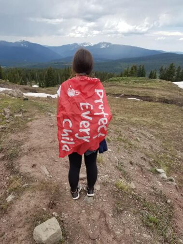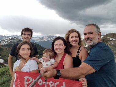 Posted by Jared Lusk on Facebook: “We had a great hike today. Got to the top and the views were amazing and the people were even more amazing! The flag is to help bring awareness to Sam Young and Protect The Children. If you haven’t already, I would encourage you to go to protecteverychild.com and see what it’s all about. We love the Colorado mountains❤❤❤”